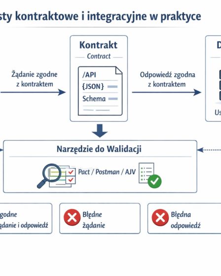 Temat tego artykułu przyszedł do mnie podczas lektury publikacji naukowej pt. „Analiza porównawcza sposobów testowania aplikacji internetowych” autorstwa Tomasza Smyka, Wojciecha Supersona oraz Małgorzaty Plechawskiej-Wójcik (2023). Autorzy omawiają wybór technik testerskich oraz rodzaje testów, które należy przeprowadzić w aplikacjach monolitycznych i mikroserwisowych. Podczas czytania zwróciłam uwagę na ciekawy rodzaj testów — testowanie kontraktowe. Testy Integracyjne …
